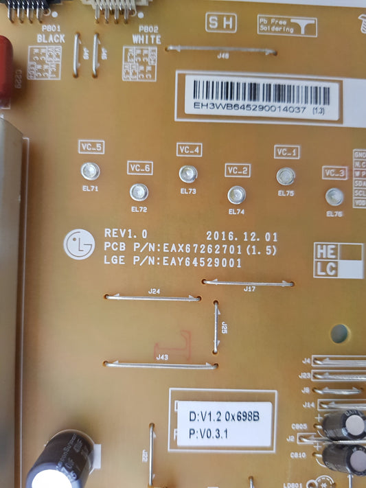 LG 65UJ752T POWER SUPPLY BOARD EAY64529001 LGP6065-17UL6 EAX67262701 1.5
