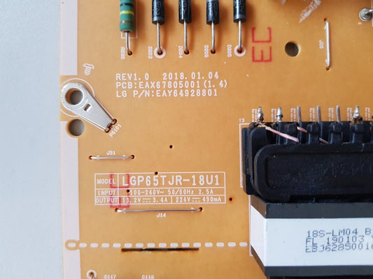 LG 65UK6340PTF POWER SUPPLY BOARD EAY64928801 LGP65TJR-18U1 EAX67805001 I
