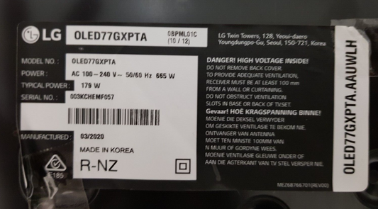 LG OLED77GXPTA .AAUWLH MAIN BOARD 65836910 66512302 EAX69066607 1.0