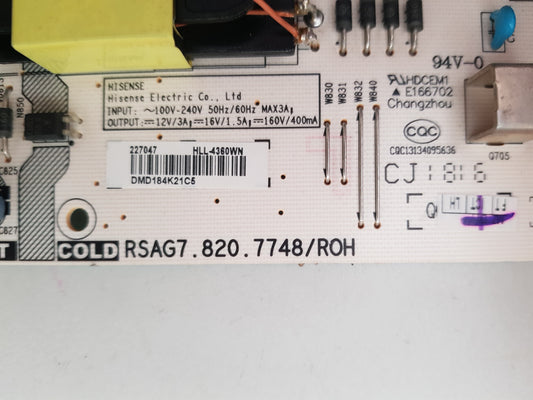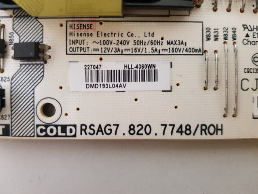 HISENSE 43A7KAU POWER SUPPLY BOARD RSAG7.820.9999 HLL-9999WM 316892