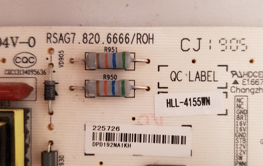 HISENSE 49P4 POWER SUPPLY BOARD RSAG7.820.6666 HLL-4155WN 225726