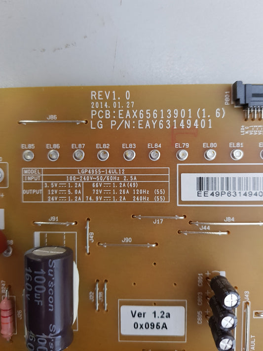 LG 55UB850T POWER SUPPLY BOARD EAX65613901 1.6 EAY63149401 LGP4955-14UL12