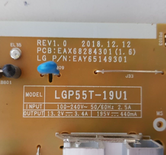 LG 55UP8000PTB POWER SUPPLY BOARD EAX69501702 LGP55NT-21U1 EAY65895522